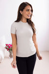 This delicate ever so simple blouse is perfect day or night! Featuring gorgeous soft ribbed fabric, modest round neckline that creates the softest feminine touch, short sleeves, with a relaxed bodice fit. This top pairs so well with jeans and all of our lovely skirts! You cant go wrong with this one!