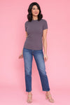 This delicate ever so simple blouse is perfect day or night! Featuring gorgeous soft ribbed fabric, modest round neckline that creates the softest feminine touch, short sleeves, with a relaxed bodice fit. This top pairs so well with jeans and all of our lovely skirts! You cant go wrong with this one!