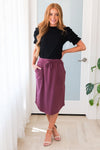 Keep your days and nights effortlessly classy with this new jersey skirt! We love when fashion and comfort collide! We adore the comfy cozy material, darling fashionable pockets, elastic waist with a string tie, and the gorgeous dusty plum color! Regardless of what you pair it with, you're bound to look gorgeous!