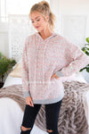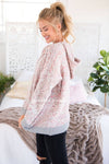 This gorgeous sweater is perfect for the chilly days! If you are looking for the best sweater to add to your wardrobe, look no further! We promise this is going to be the sweater for you. It features a round neckline with a hood, beautiful grey color with hints of rose, coral and yellow. Trust us, you are going to love this one and its cozy oversize fit!