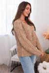 This darling cable knit sweater is perfect for Fall! Featuring a gorgeous color combination, it creates the softest feminine touch and pairs well with everything! Get yours today for the perfect pair to any outfit!