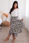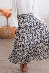 Make a statement in this beautiful new tiered skirt! This perfect length skirt is classy and oh so pretty. Featuring a slip on style, elastic waistline, and we absolutely adore the cream and navy color combination! It is so perfect for Fall!