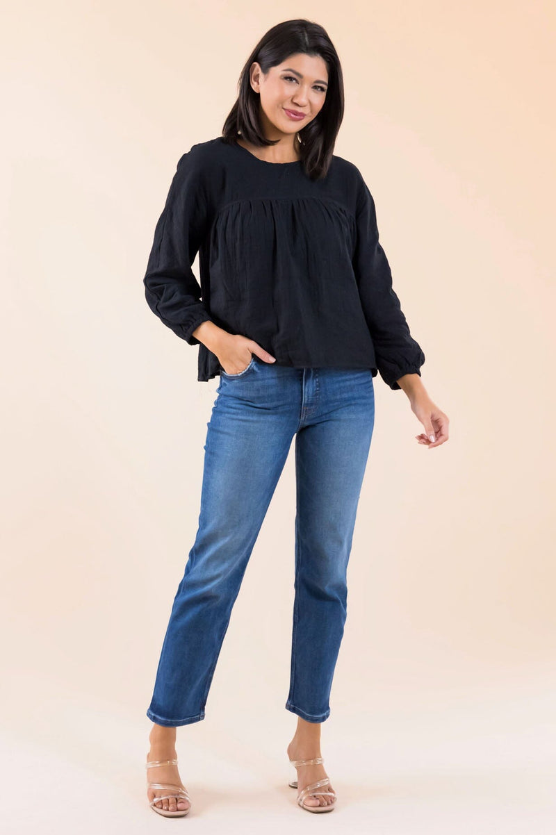 The classiest blouse has just arrived and we promise you are going to want it! Featuring a lightweight gauze fabric, quarter length sleeves and a perfect for all babydoll style! Get yours today!