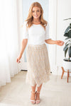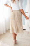 We can't get enough of our newest Fall Blooms skirt! They are so flattering on every body type, and are perfect for any occasion! They have all the best features, such as an elastic band waist, delicate cream floral floral print throughout, it's the perfect pair for any top! Make sure to get this cute skirt for your summer and fall wardrobe!