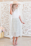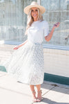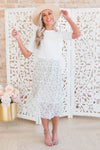 We can't get enough of our newest Fall Blooms skirt! They are so flattering on every body type, and are perfect for any occasion! They have all the best features, such as an elastic band waist, delicate yellow, tan, and light blue wildflower floral print throughout, and a pretty ivory color! Make sure to get this cute skirt for your summer and fall wardrobe!
