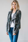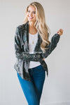 This new fall jacket features the cutest faded camo print, a zipper front and zipper side pockets!
