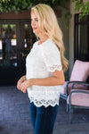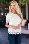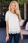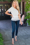 HURRY! This top will not last long! Our Delicate Statement Lace Top is seriously so darling. Featuring a round neckline, feminine lace & scalloped sleeves, and key hole back detail, this top is a must have for sure! Don't pass this new arrival up!