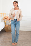 We are obsessed with this buffalo plaid cropped cardigan it is so darling! This sweater is the perfect pair with everything! Your favorite dresses, skirts, jeans, you name it! This plaid combo is a gorgeous must have for every wardrobe!
