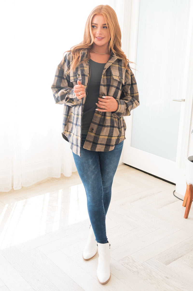 Our Feeling Frosty Jacket is so darling! We love cute shackets for the fall, and this is one of our favs! This jacket has the most amazing features, such as the thick knit fabric, long sleeves, button and pocket detailing, as well as the gorgeous plaid. This thick jacket is bound to keep you warm while looking gorgeous too!