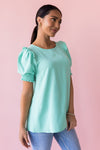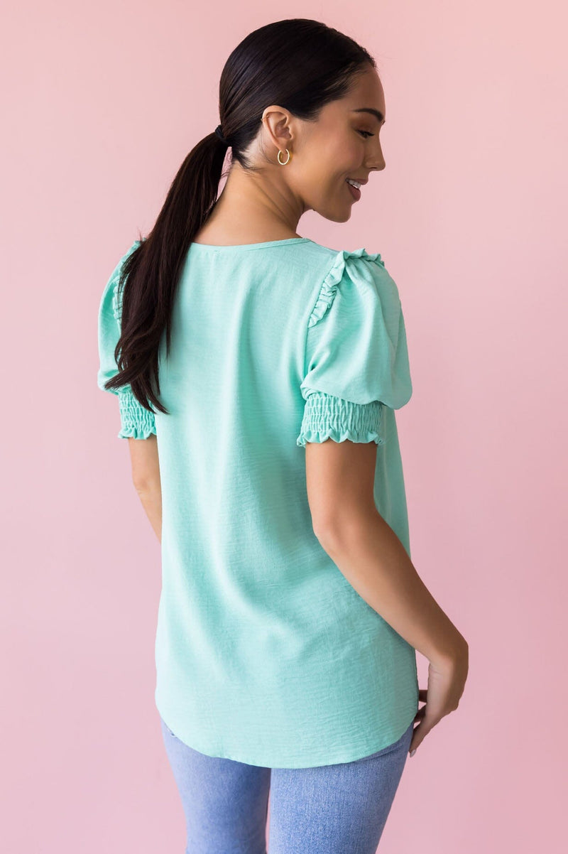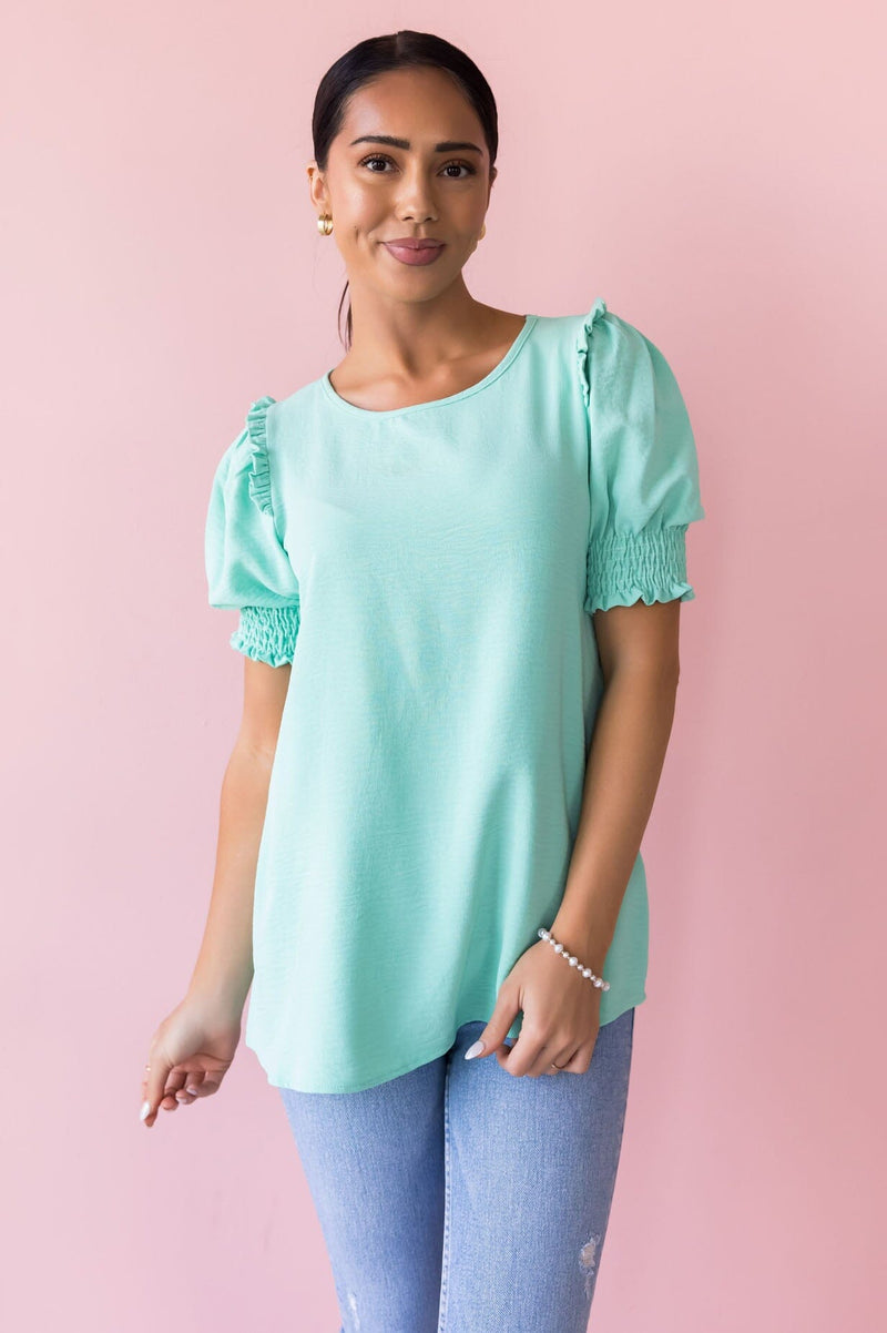 Grab this darling ruffled shoulder puff sleeve top and start pairing with your favorite jeans and skirts today! This feminine light textured beauty needs to be in your wardrobe, trust us!