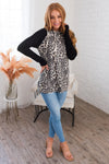 This absolutely adorable hoodie is here and is so perfect for the Fall! The lightweight waffle material and modest design is beyond perfect! It is oh so soft and comfortable, has black sleeves, and the cutest leopard print pattern on the bodice and hood! So cute! Get yours soon!