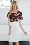 This top features the softest material and prettiest floral print! And it's perfect with so many of our skirts to make the perfect outfit. Cream floral top features a round neckline, and short sleeves with double ruffle detail.