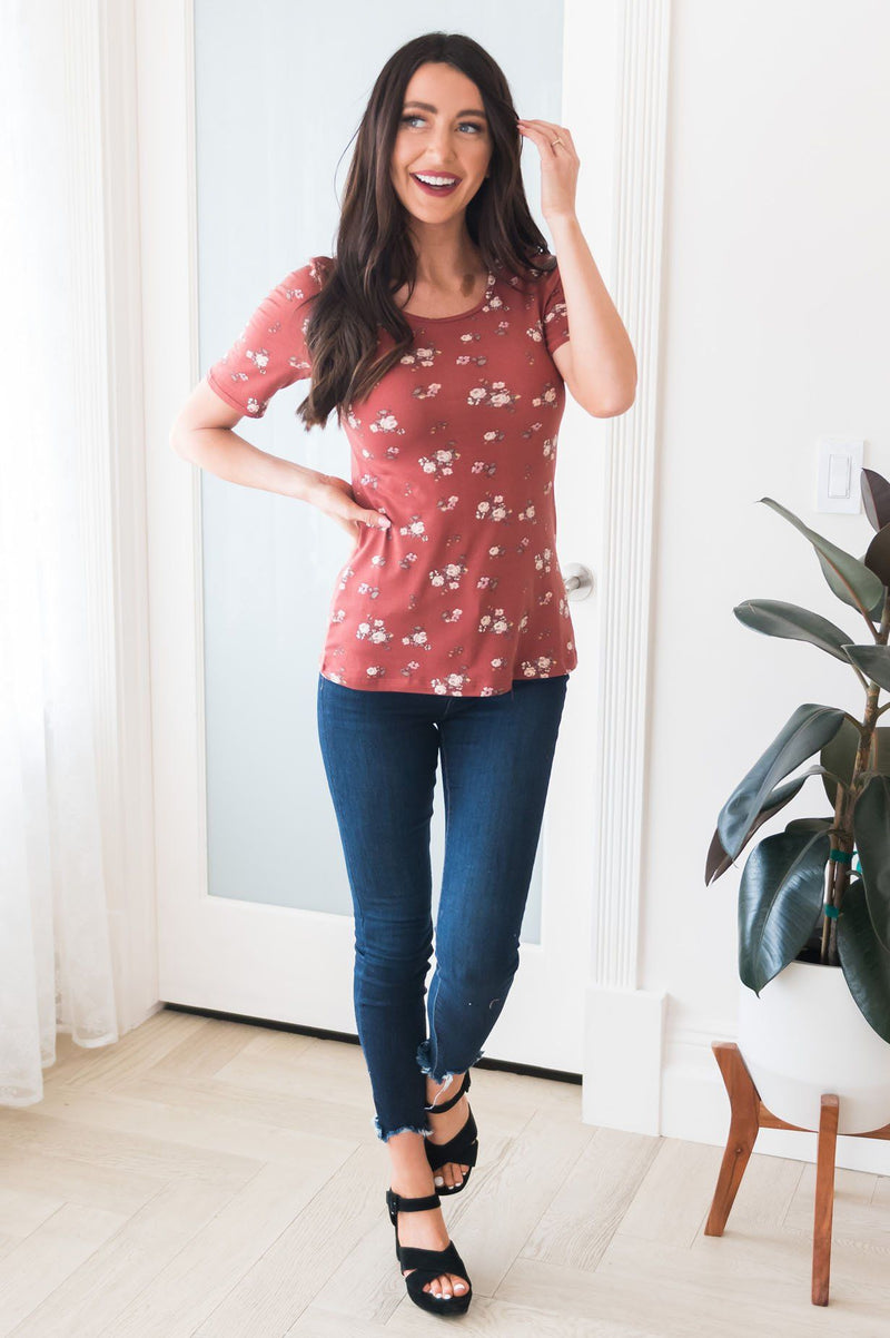 Floral Scoop Neck Modest Tee