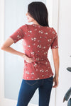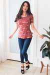 This is the perfect go-to top, and believe us when we say, this top is incredibly soft! Marsala top features a round neckline, half sleeves and a lovely mauve/ivory mini floral print. Perfect for pairing with all of our skirts.