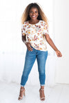 This is the perfect go-to top, and believe us when we say, this top is incredibly soft! Ivory top features a round neckline, half sleeves and a mustard and rust floral print. Perfect for pairing with all of our skirts.