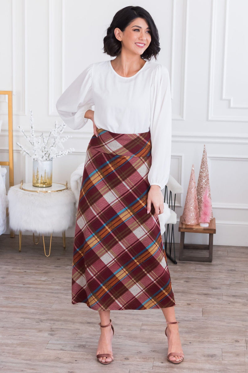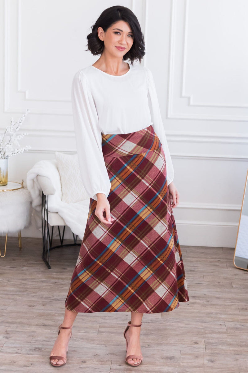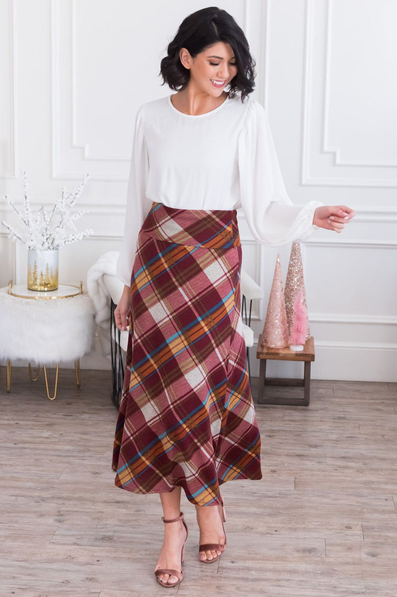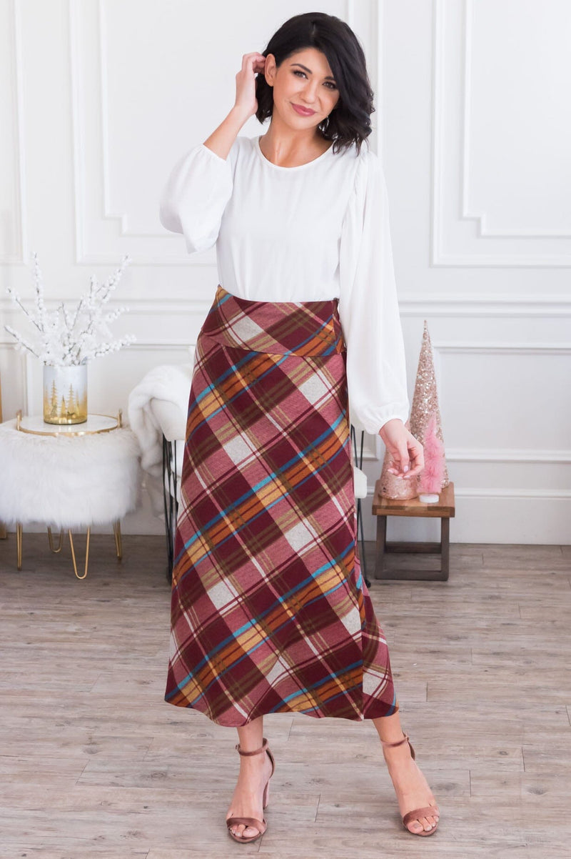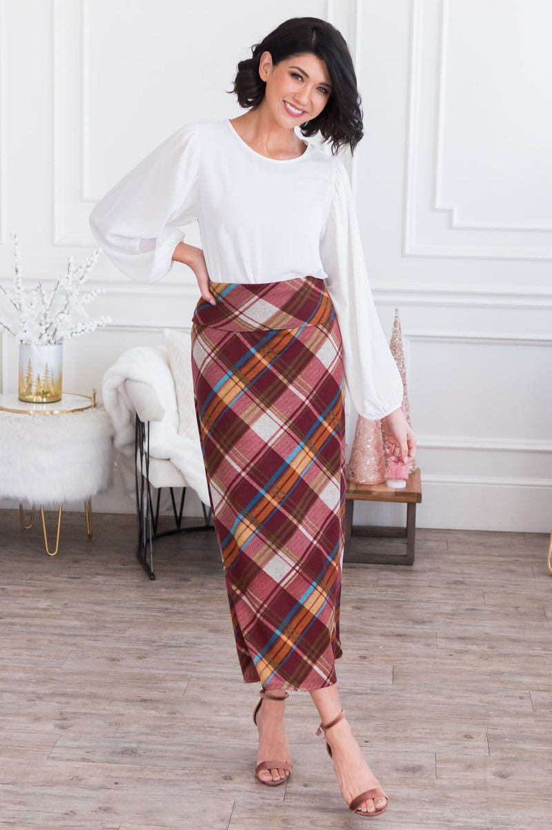 We are Faithfully in Love with this darling feminine plaid skirt! It is the perfect modest maxi length, perfect flattering fit with it's elastic waistline and the absolute perfect delicate style with it's plaid print. Get yours today!