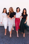 We are seriously in love with this darling feminine tulle skirt! It is the perfect modest length, has super cute pleating, a waistline bow detail, a perfectly flattering fit with it's elastic waistline, and a holiday party ready scarlet red color! Get yours today!