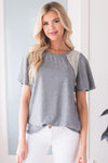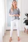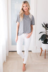 This delicate blouse is so beautiful! The delicate lace detailing on the sleeve, swiss dot material, and flowy short sleeves! We just adore this shirt and know you will too! Pair with jeans or a cute skirt for the perfect outfit!