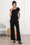 You can do anything in a lounge pants that are this classy and cozy! We all love relaxing on the Friday nights, now you can do it in style! These pants feature a classic black color, elastic drawstring waistline and pockets. Pair this with our must have Friday Nights In lounge top for the perfect classy combination!
