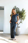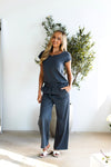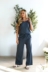 You can do anything in a lounge pants that are this classy and cozy! We all love relaxing on the Friday nights, now you can do it in style! These pants feature a lovely moonstone, elastic drawstring waistline and pockets. Pair this with our must have Friday Nights In lounge top for the perfect classy combination!