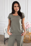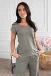 You can do anything in a lounge top that is this classy and cozy! We all love relaxing on the Friday nights, now you can do it in style! This top features a lovely olive color and short cuffed sleeves. Pair this with our must have Friday Nights In lounge pants for the perfect classy combination!