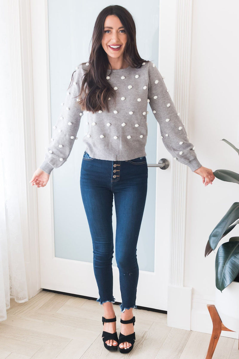 This gorgeous sweater is the perfect pair for any outfit! If you've been on the search for the perfect spring sweater to add to your wardrobe, look no further! Features include medium weight material with the most delicate pom detailing throughout and long sleeves. Get yours today!