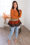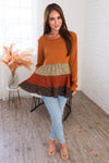 This flowy top is so in and oh so classy! We love the modest round neckline, darling long sleeves, flowy bodice and perfect color combination for Fall, this one is perfect to pair with anything! It is bound to be an instant hit for any wardrobe! Get yours today!