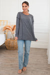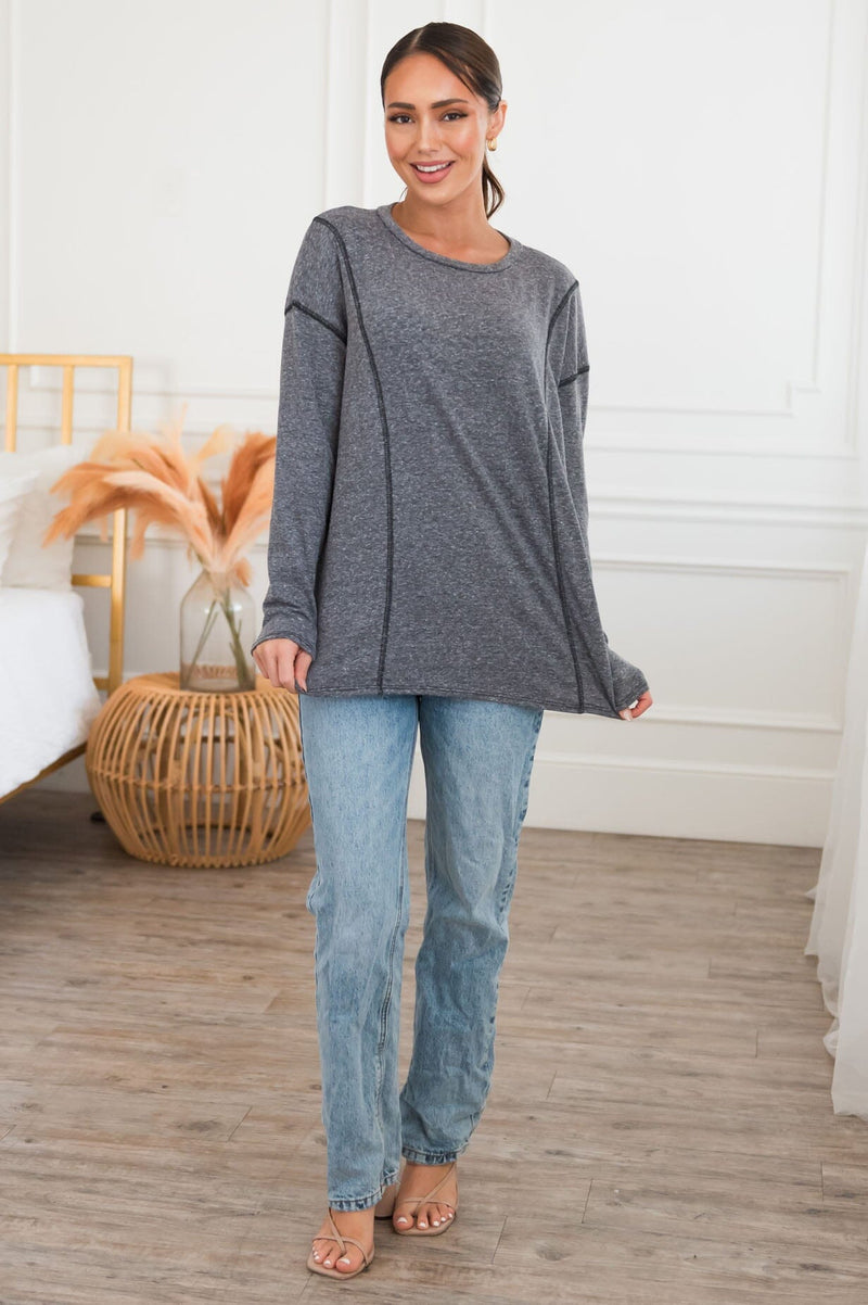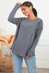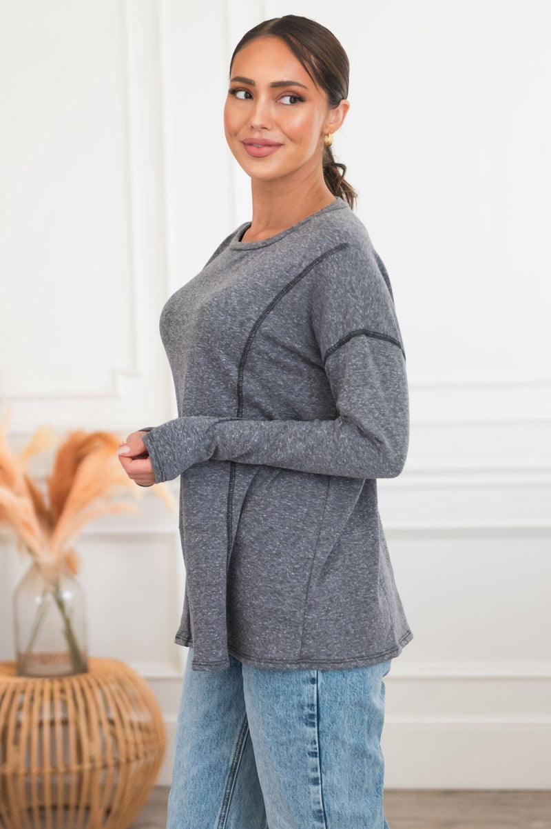 The most trendy comfy top is here and needs to be a part of your wardrobe! Featuring wonderful french terry fabric, contrast stitching, modest round neckline, long sleeves. Get yours today before they are gone and you regret it!