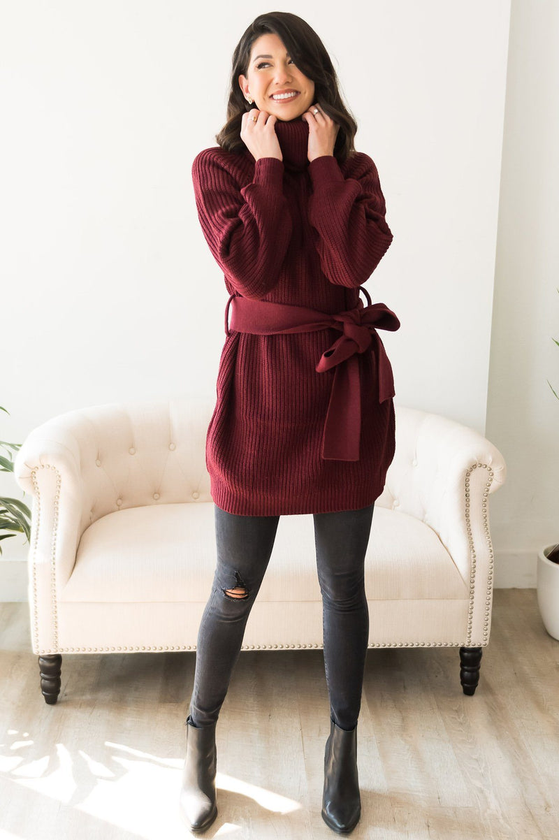 Giving My All Modest Knit Tunic is so darling! This sweater has the most amazing features, such as the super soft knit fabric, a bulky turtleneck, long puff sleeves, a thick belt tied waist, and six beautiful colors! This sweater tunic is perfect for any fall outfit, make sure to get yours soon!