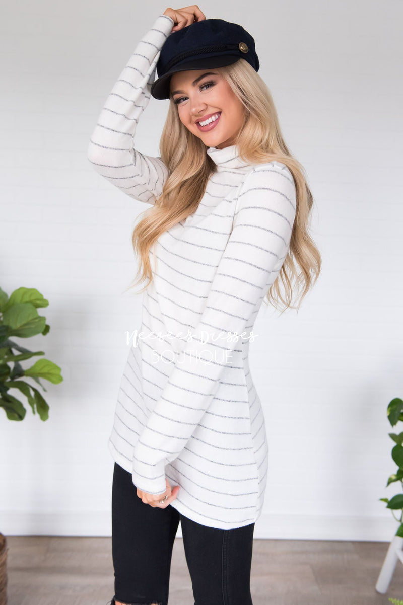 This is one purchase we promise you will never regret! We are obsessed with the this striped detail on this new arrival! The Happy Times Striped Top features a turtle neck, long sleeves, and the softest material EVER! You all will not want to miss out on this cutie.