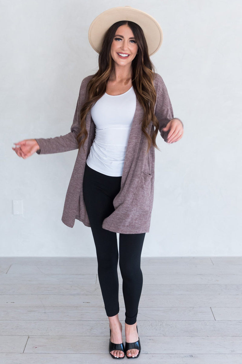 Our Yours Only Cardigan is so darling! This cardigan has the most amazing features, such as the super soft knit fabric, long sleeves, pockets, as well as the beautiful heather mocha color! This sweater is perfect for any fall outfit, make sure to get yours soon!