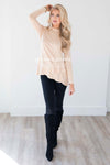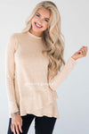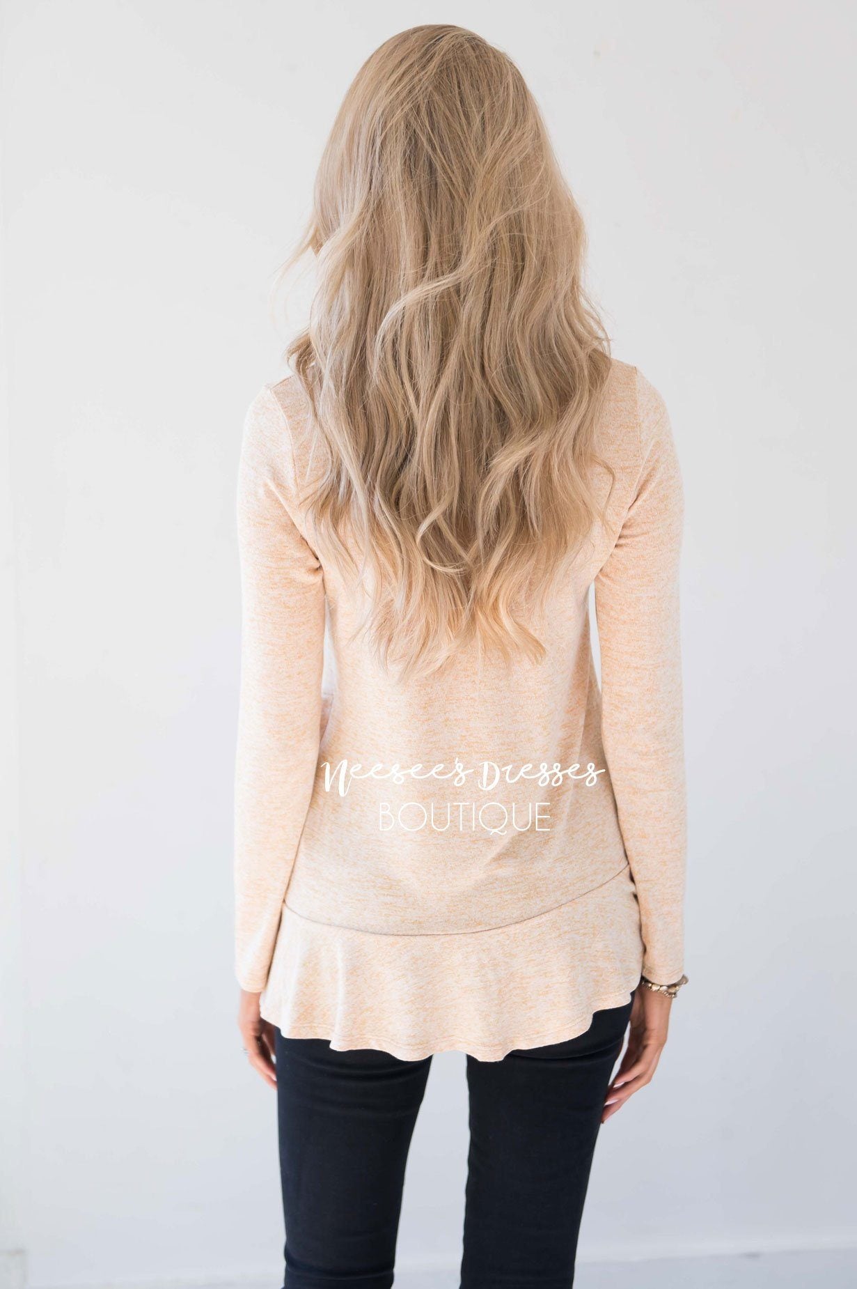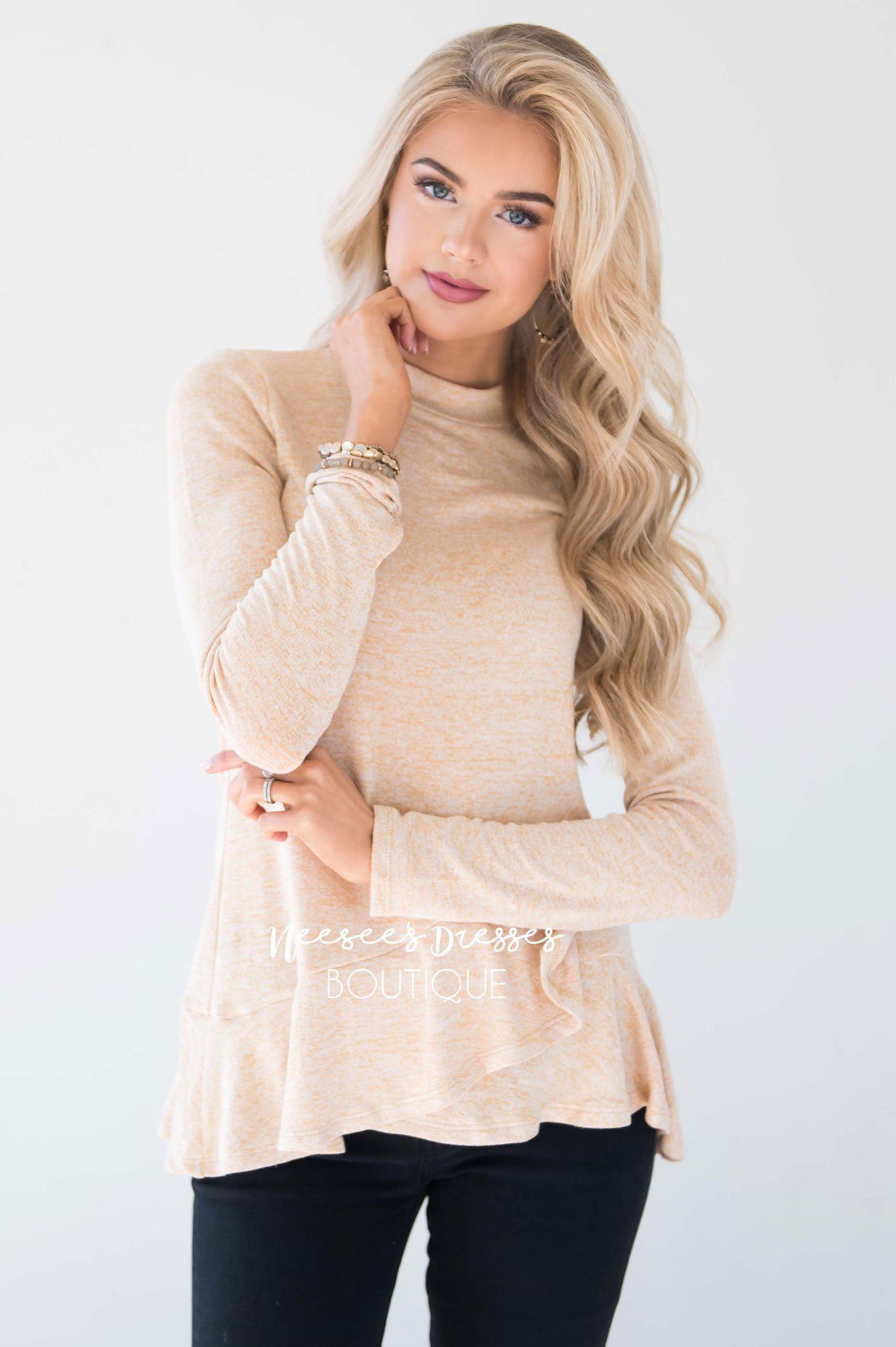You can never have too many sweaters for fall and winter! Are we right?! This soft as can be heather mustard sweater features high neckline and double ruffle hem.