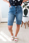The High Tide Mom Fit Bermuda short have just arrived & they are a true must have! These lovely shorts feature modest fit, lovely medium indigo wash & cute pockets and button front detail. This one is surely a must have!