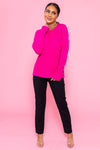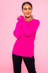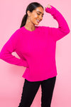 Search no further for your new, go-to, cozy and soft, sweater! We are currently obsessing over the classy raglan style long sleeves, and pretty hot pink color. This honest beauty pairs effortlessly with jeans, or is so cute tucked into a skirt! Add some booties and you're ready to go!