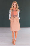 This stunning sahara desert hued skirt is going to be a new staple piece in your wardrobe! It has a tie waist detail making for that perfect slimming effect. It also features a fitted button closure waistband and has pockets. You will not regret buying this piece so go ahead and add it to cart now!