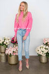 Current mood- Obsessed with this bright chic sweater! What is not to love about this adorable new sweater, from the high neck to the bubble sleeves, every detail about this sweater is swoon worthy! Bright pink sweater features a high neck, long bubble sleeves and a super soft fabric.