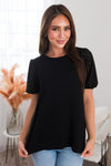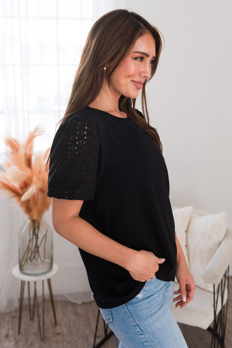This delicate top is so in and oh so classy! We love the modest round neckline, darling eyelet bubble sleeves, this one is perfect to pair with anything! It is bound to be an instant hit for any wardrobe! Get yours today!