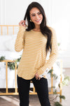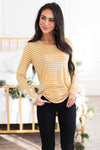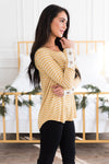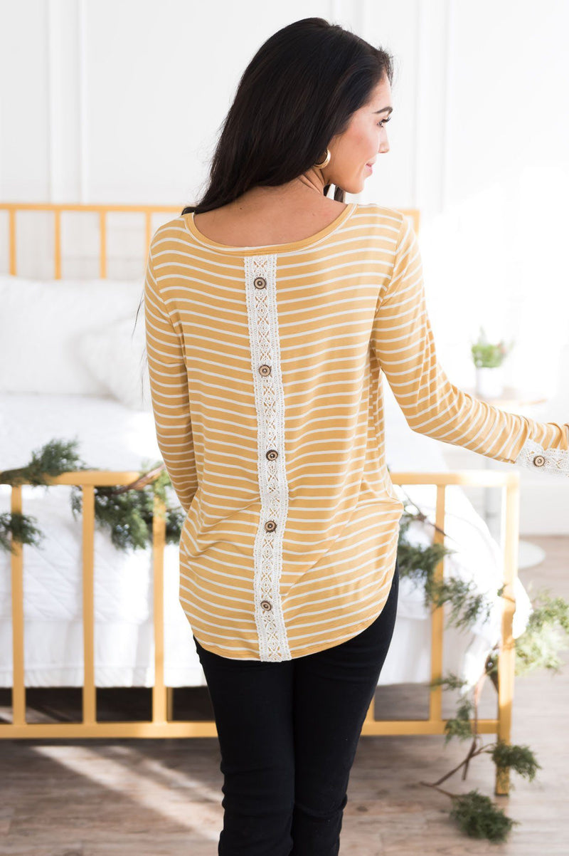 Stripes, lace, buttons galore! We are loving absolutely every little detail about this top! Loving the soft stretch fabric, crochet lace detailing down the back and lastly the darling crochet lace & button detailing on the long sleeve cuffs. Get yours today!
