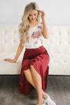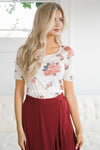 This top features the softest material and prettiest floral print! This top is perfect with so many of our skirts to make the perfect outfit. Ivory features a round neckline, short sleeves and lovely floral print.