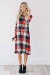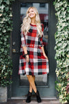 Soft, check! Comfy, check! Beautiful, check! Swing into the holiday season in our new Jingle Bell Rock Swing Dress! Deep red, black and beige plaid dress has a round neckline, 3/4 length sleeves and side seam pockets.
