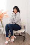 The lovely Joyful Nights modest sweater is a must have! This darling sweater is so comfortable and features the coziest knit, a grey, ivory, light blue blend, cable knit detailing throughout, and cuffed long sleeves. We simply adore it, get yours today!