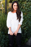 Grab this fun flowy top and start creating all the best memories! This ivory blouse features a rounded neckline, beautiful smocking detail on the bodice, 3/4 length puff sleeves and an adorable high-low hemline. Perfect for pairing with skirts or with jeans
