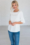 This beautiful top is such a stylish addition to your closet! Featuring a delicate ribbed material, this lovely look goes with so many pieces! Perfect for pairing with skirts or with jeans. Featuring mini half bell sleeves for the perfect pop of fun and fashion!