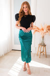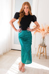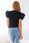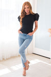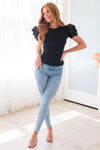 All we want is this darling rosette detailed blouse! We know you do too! This blouse has adorable short puff sleeves with feminine rosette detail, perfect true to size fit and the classy go with anything black color!