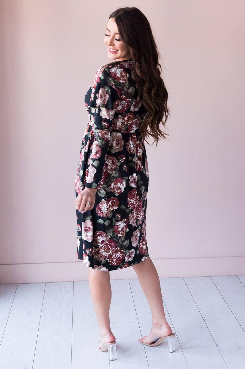The Karina is bound to be your new favorite go to Summer/Fall dress! Lovely flattering soft fitted material, Long sleeves with the cutest ruffle shoulder, elastic waist and oh yes POCKETS! Makes this the perfect dress for everyone! Get yours today!