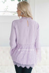 This beautiful blouse is perfect for pairing with skirts or jeans and will have you date night and Sunday church ready! The pretty blouse has a high neck, lace inserts and bell sleeves.