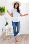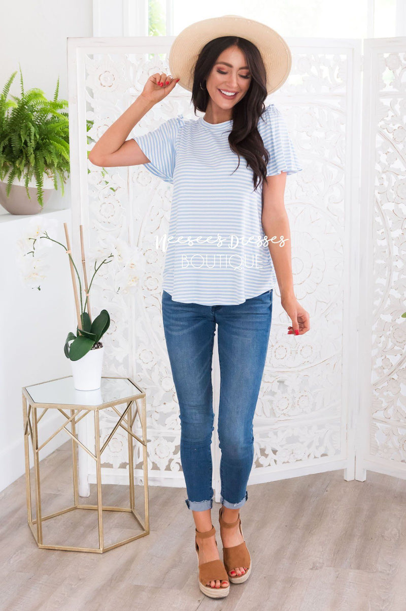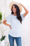 To say we are in love with this top would be an understatement! This gorgeous flutter sleeve tee is seriously adorable! It features a round neckline, short flutter sleeves with shoulder ruffle detailing and the comfiest and softest ribbed material EVER. Trust us ladies, this is a must have!