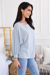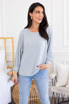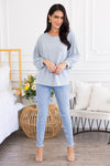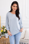 The new Limitless Love top is so stylish for all! Features the perfect match for everything! Featuring a flattering dusty blue color, quarter length balloon sleeves and an oh so cozy fit! Gets yours today because this match friendly beauty will go quick!