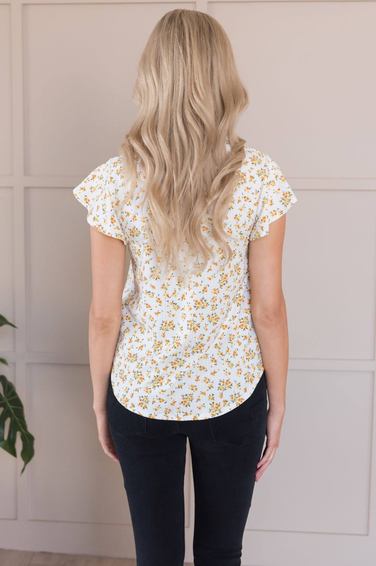 The darling feminine, yet oh so simple floral blouse has all the best features! Perfect to dress up with one of our gorgeous skirts or dress it down with your favorite pair of jeans. Whatever you need this is bound to be your go to top!