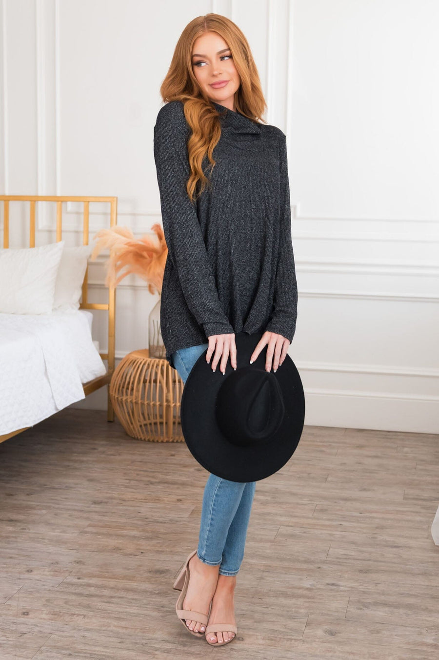 This darling sweater is a true must have! Pair it with our Love and Beyond sweater skirt for the perfect outfit or pair it with your favorite jeans for the perfect casual look! Features a mock neck, long sleeves and the modest high low hem with side slits create the perfect classy look!